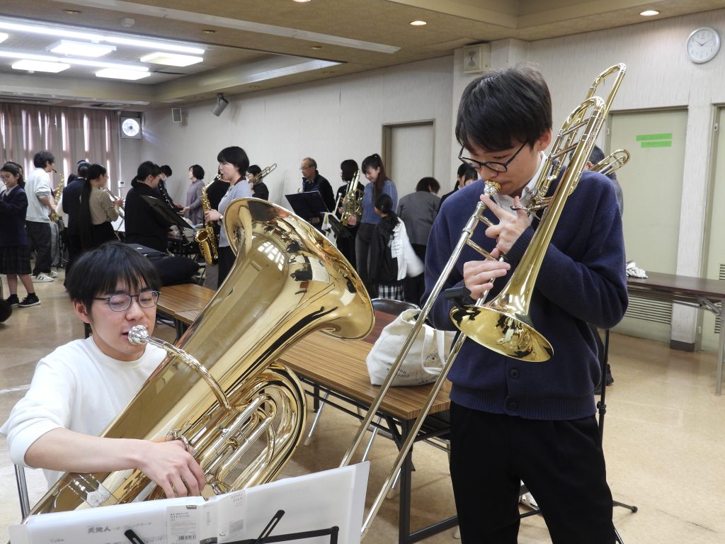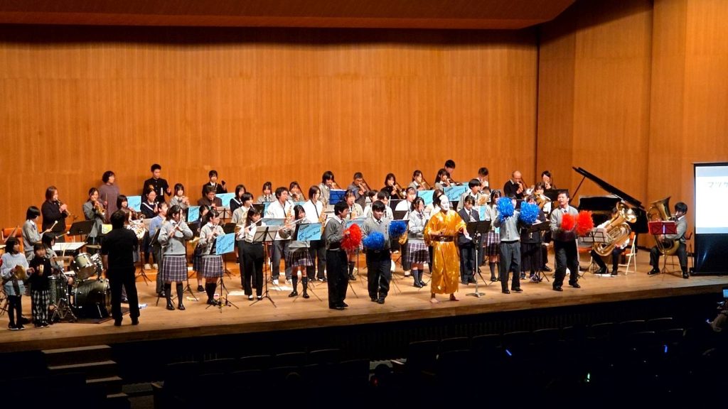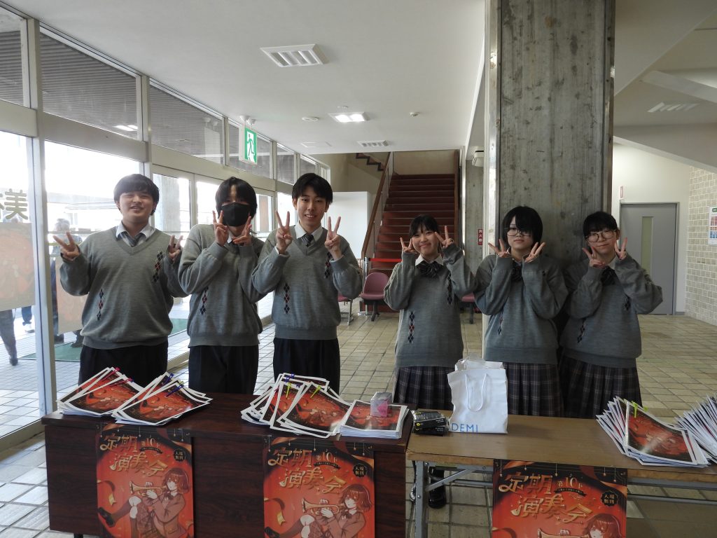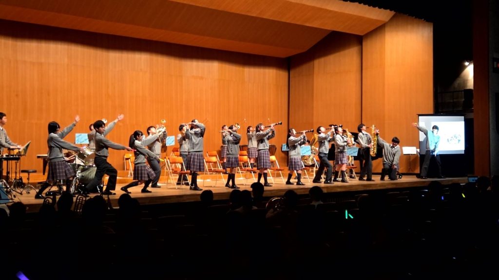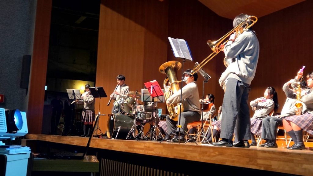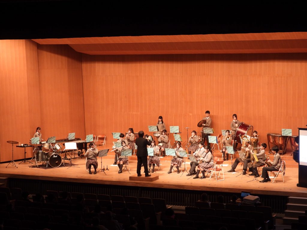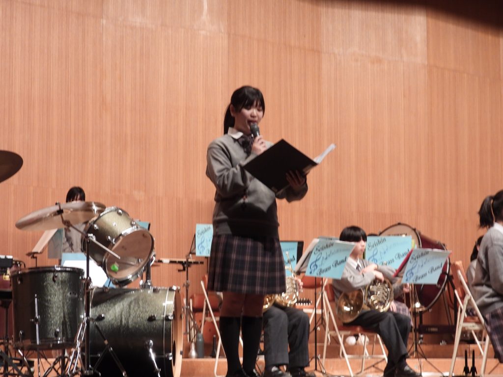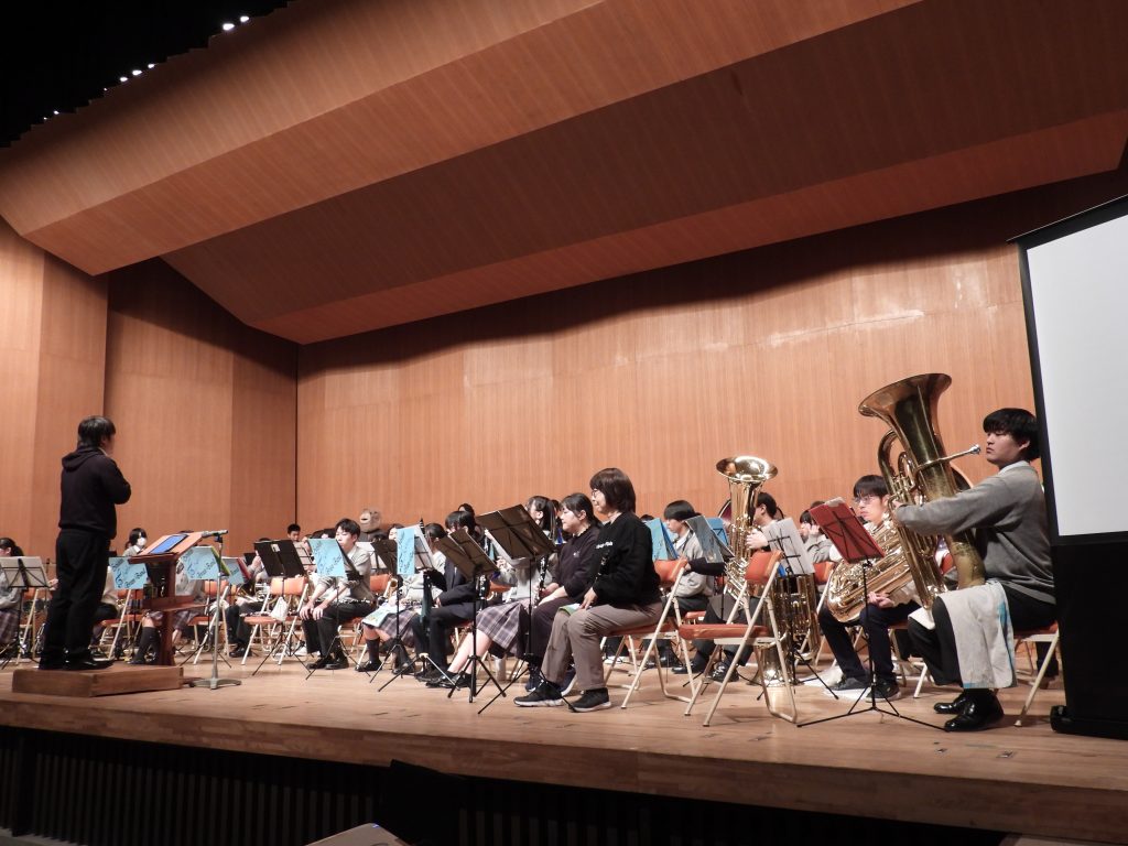 2026年3月2日 第10回成進高等学校吹奏楽部定期演奏会 2月22日(日)に美祢市民館で第10回成進高等学校吹奏楽部定期演奏会が行われました 控室には、卒業生と元顧問の白木先生も応援に来てくれました MINEブラスバンドの方もご参加頂き、最後の練習を行いました 奏者側からのなかなか見れない風景です 受付は3年生がやってくれました!今年のポスターも第10回ということでゴージャスです! 1部は1、2年生によるクラシックステージです 司会は3年生が行ってくれました 2部のフォーチュンクッキーでは、ダンスをしながらの演奏で会場もサイリウムでまるでコンサート会場!!大変盛り上がりました!!! 3年生による卒業アンサンブル!3年間の思いを込めた素晴らしい演奏でした!! MINEブラスバンドの方々、OB、OGにも入ってもらってマツケンサンバで大盛り上がり!!!もちろん、今年も成進高校のマツケンならぬ、オグケンがステージを盛り上げてくれました!! « キャリアガイダンス
